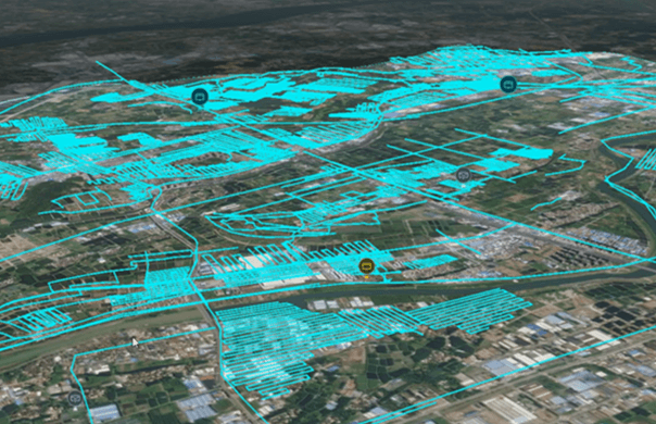 云平台进行三维航线规划,适应本地城镇实际需求,多部门共享数据。